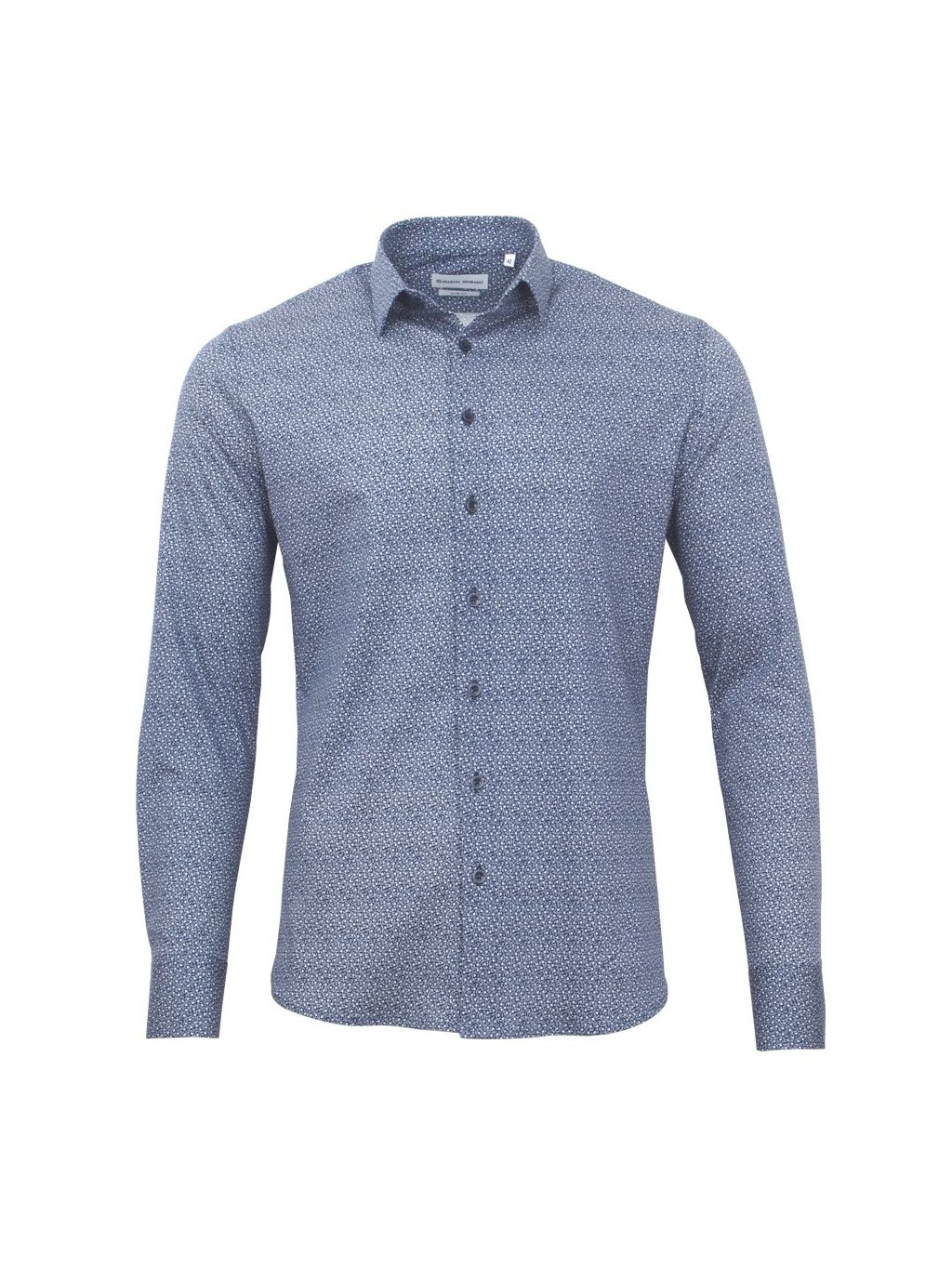 Pánska moderná košeľa s komfortom trička s kvetinovým dizajnom. Úpletový materiál zo 100% bavlny je ľahký, elastický, priedušný a ľahko žehliaci. Obľúbený strih Slim Fit funkčná spolu s materiálom ponúka maximálny komfort pri nosení. Štýlová a zároveň pohodlná košeľa pre moderného a dynamického muža je vhodná do obleku ako aj na bežné nosenie.