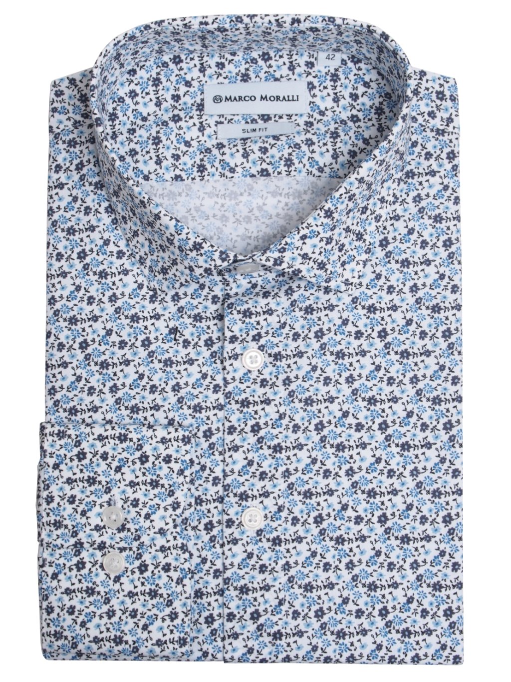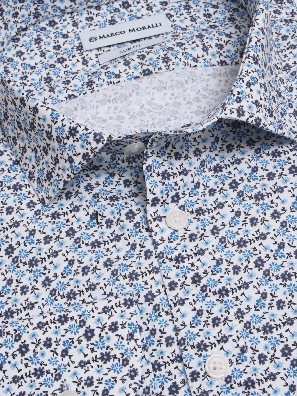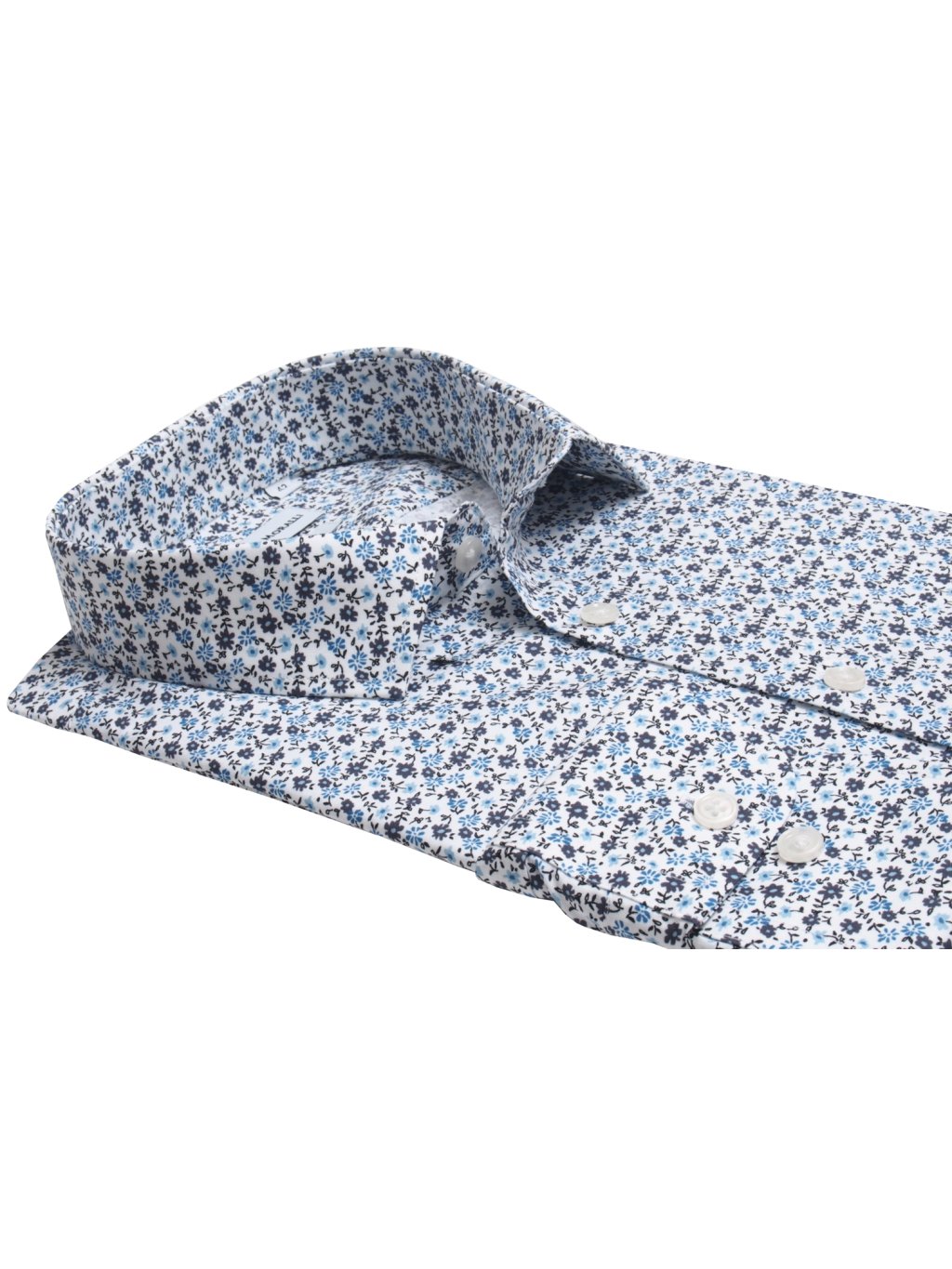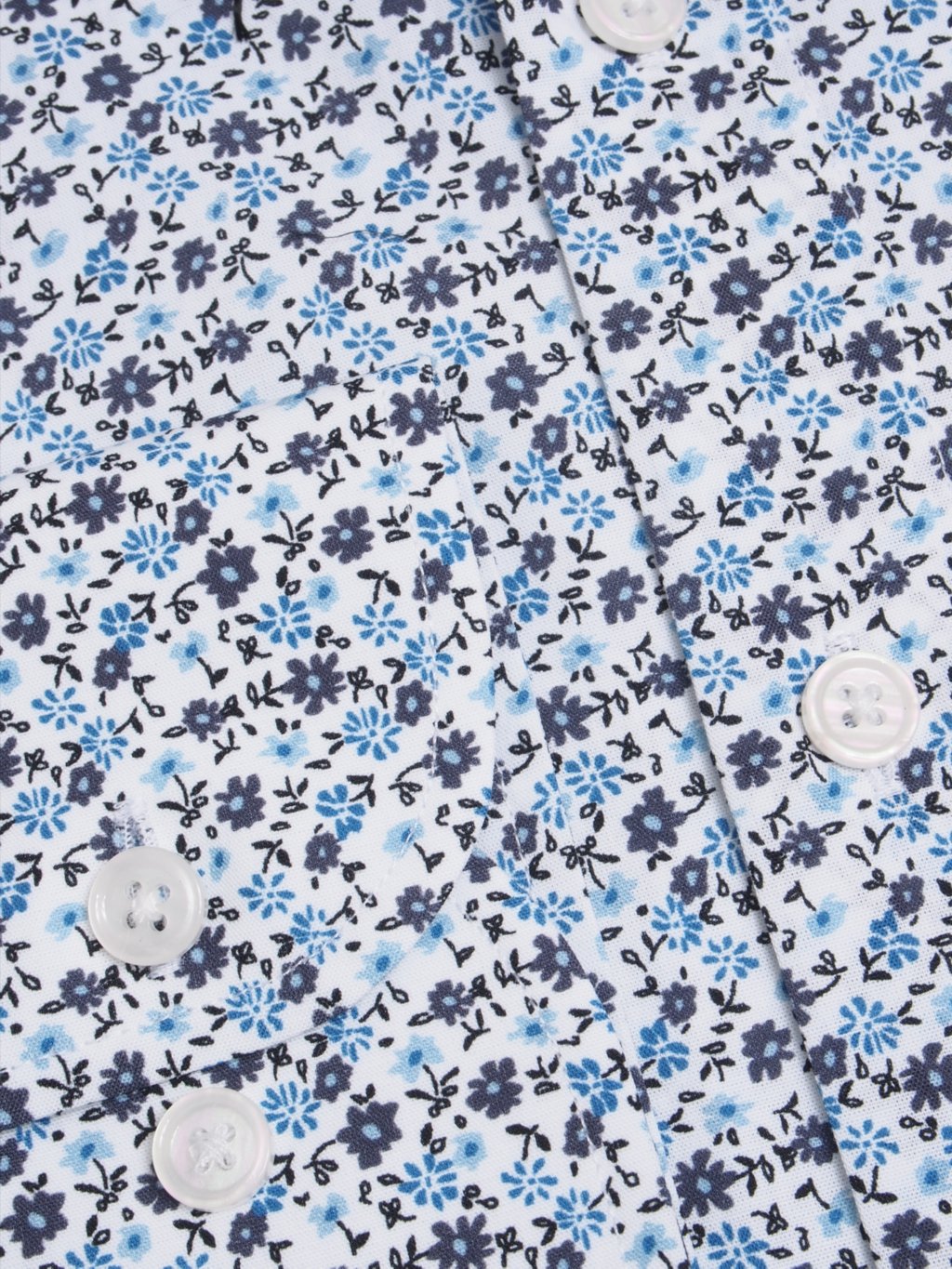 Pánska košeľa s jemným kvetinovým vzorom v modrých farbách. Jemné bavlnené priadze spolu s pohodlným strihom Slim Fit pôsobia dokonale. Táto košeľa sa hodí na formálne i neformálne príležitosti.