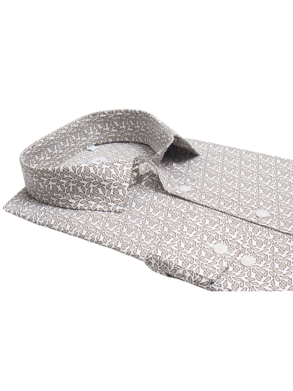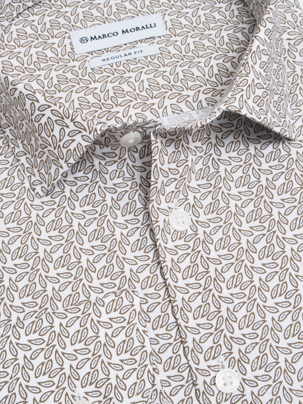 Táto pánska košeľa s jemným vzorom v hnedých tónoch je vyrobená v strihu Regular Fit. Pre zabezpečenie maximálneho komfortu pri nosení majú bavlnené priadze elastan. Ideálna elegantná pánska košeľa do pracovného obleku.