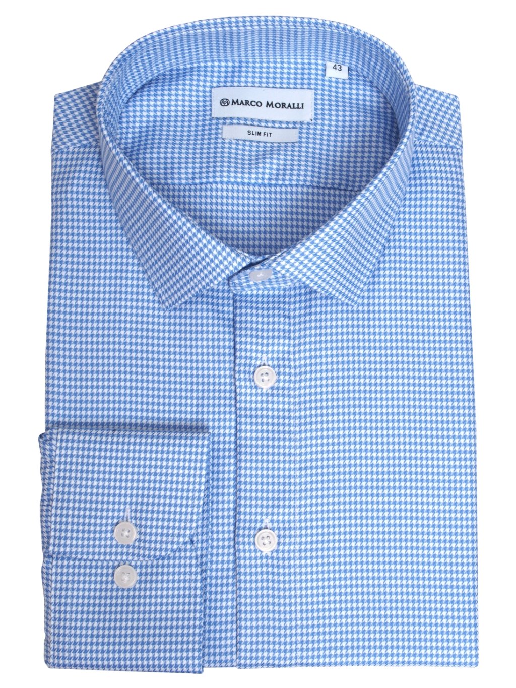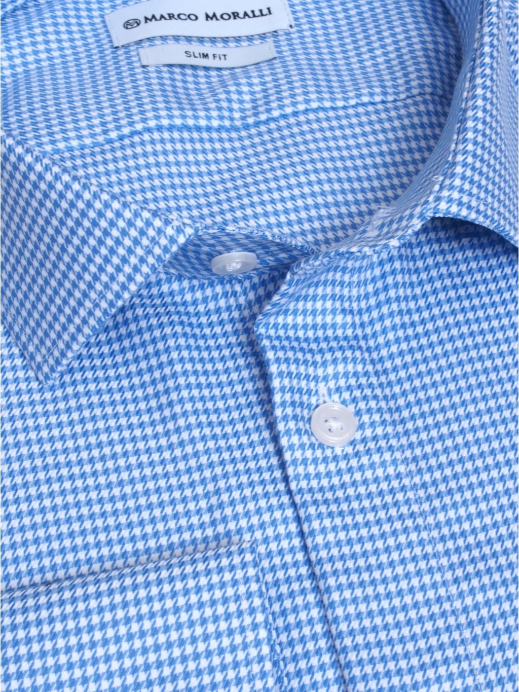 Vysoko kvalitná bavlnená tkanina s klasickým dizajnom vo farebnej kombinácii bielej a modrej. Jemná elegantná textúra v spojení s príjemným materiálom ako dokonalá biznis košeľa. Pánska košeľa je vyrobená v strihu Slim Fit.