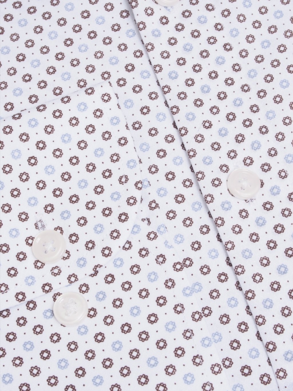Elegantná pánska košeľa vyrobená z kvalitnej bavlnenej tkaniny s prímesou elastanu zvyšuje komfort pri nosení.  Jemný decentný vzor v kombinácií farieb bielej, modrej a hnedej jej dodávajú dokonalý vzhľad. Pánska košeľa je vyrobená v strihu Slim Fit.