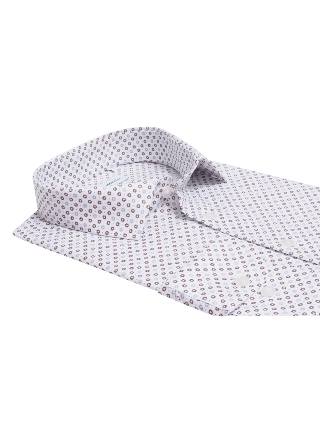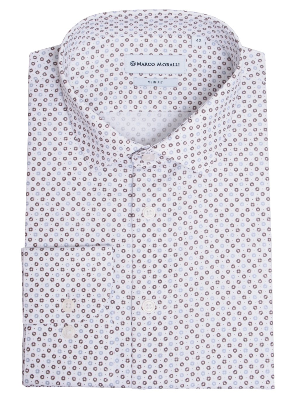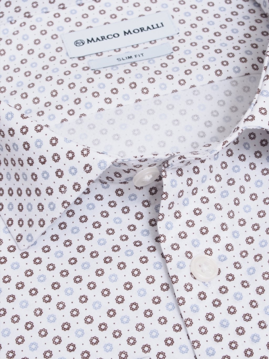 Jemný decentný vzor v kombinácii farieb bielej, modrej a hnedej jej dodávajú dokonalý vzhľad. Pánska košeľa je vyrobená v strihu Slim Fit.