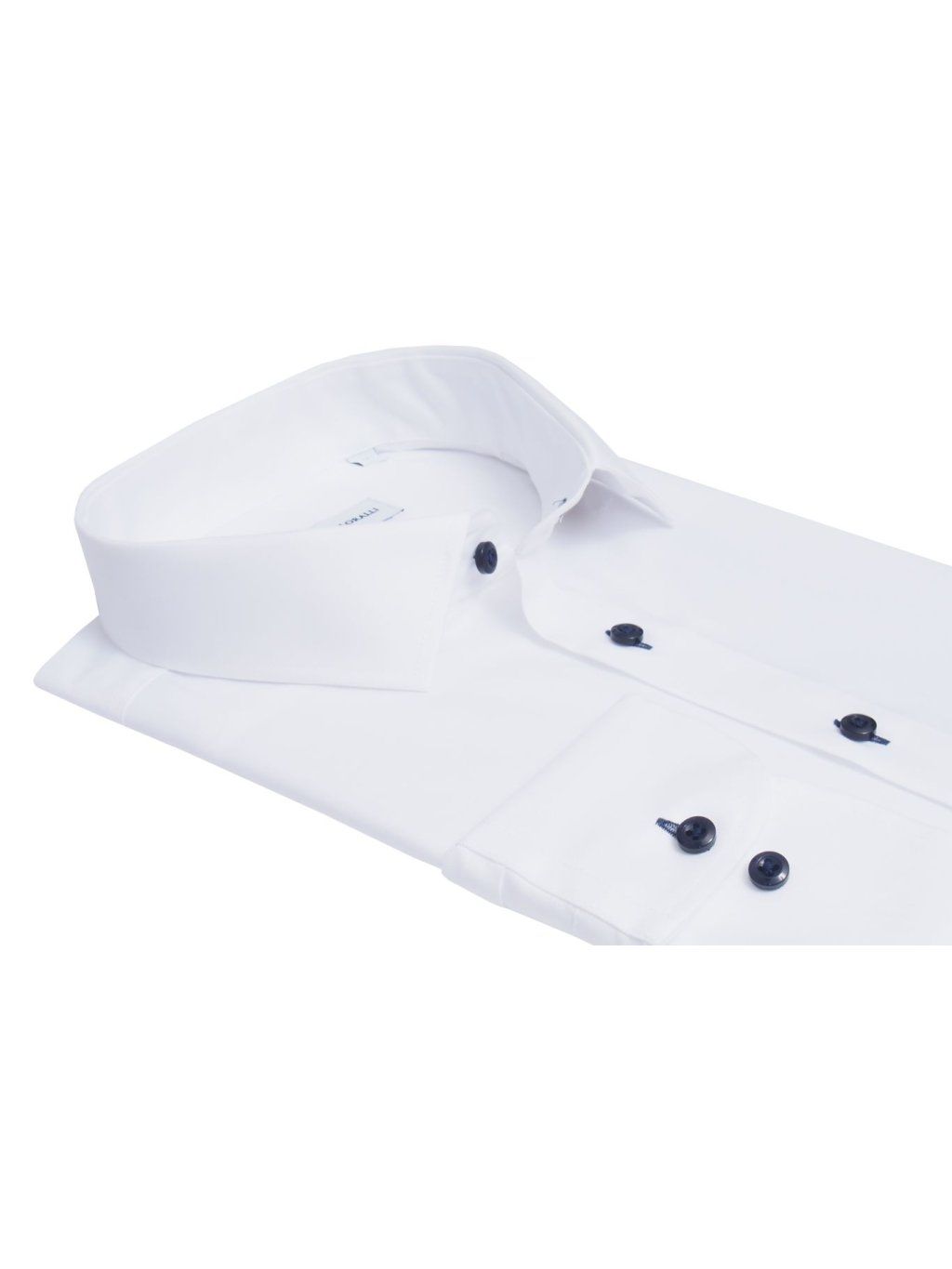 Biela pánska košeľa vyrobená z kvalitnej bavlnenej tkaniny, ktorá zaručuje jej príjemné nosenie.
