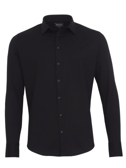 Strečová pánska košeľa s krátkym rukávom v čiernej farbe je vyrobená v modernom strihu Slim Fit Funkčná.